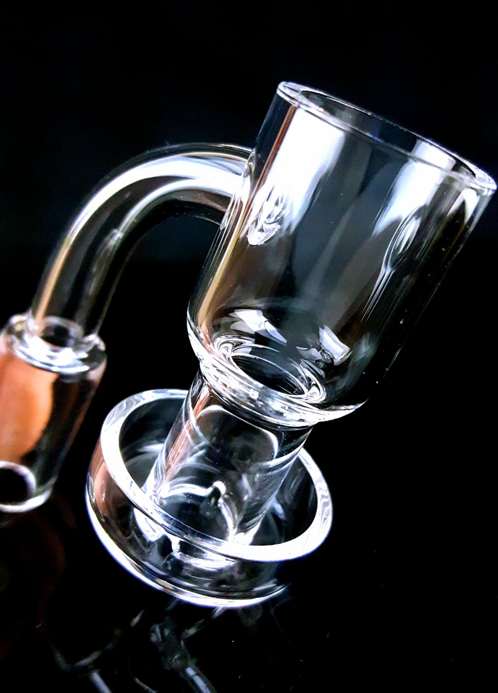 The terp slurper is the latest and greatest in the quartz nail family. This design is extremely effective as your concentrate drips down to the bottom dish that is slitted. These slits allow air to come in from the bottom and push your dabs back into the middle area. Dab into the top area or bottom dish! Perfect for those sneaky ninjas!